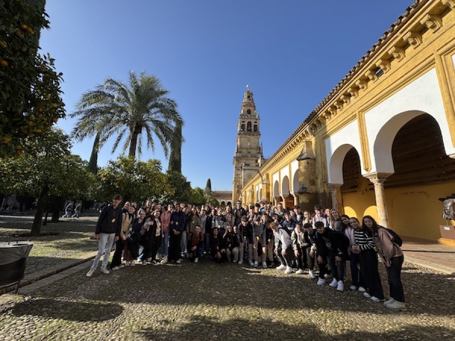 Este 28 de noviembre nuestros alumnos y alumnas de 2º y 3º de ESO, acompañados por los profesores de Historia (Jose y Virginia) y de Lengua y Literatura (Pepe), han salido de excursión a la cercana provincia de Córdoba para visitar unos de los monumentos históricos más importantes de España y de Andalucía, la mezquita-catedral de Córdoba (Patrimonio de la Humanidad desde 1984). Un monumento histórico que refleja el grandioso pasado histórico y cultural de nuestra tierra.