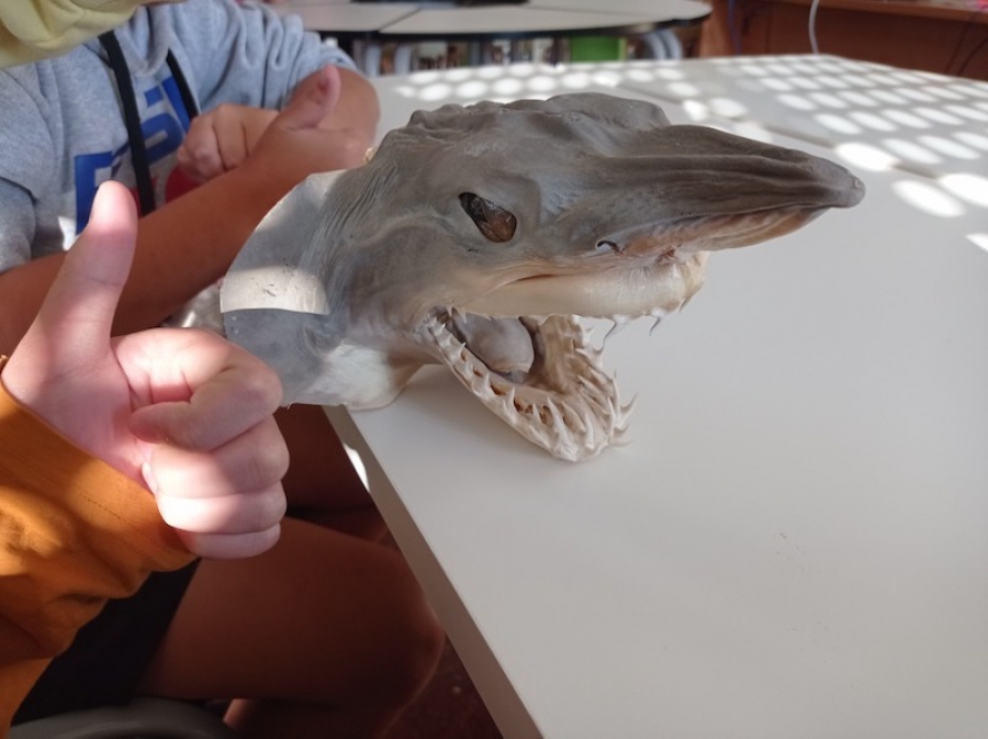 Finalmente hemos terminado con un taller de identificación a partir de algunas especies disecadas, sus dentaduras y los dentículos de su piel.